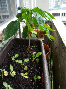 I sowed some pepper seeds in the pot on the left today. This time no overwatering. And, I mixed the soil with some bone meal. Not on the top though. The bone meal stinks.
